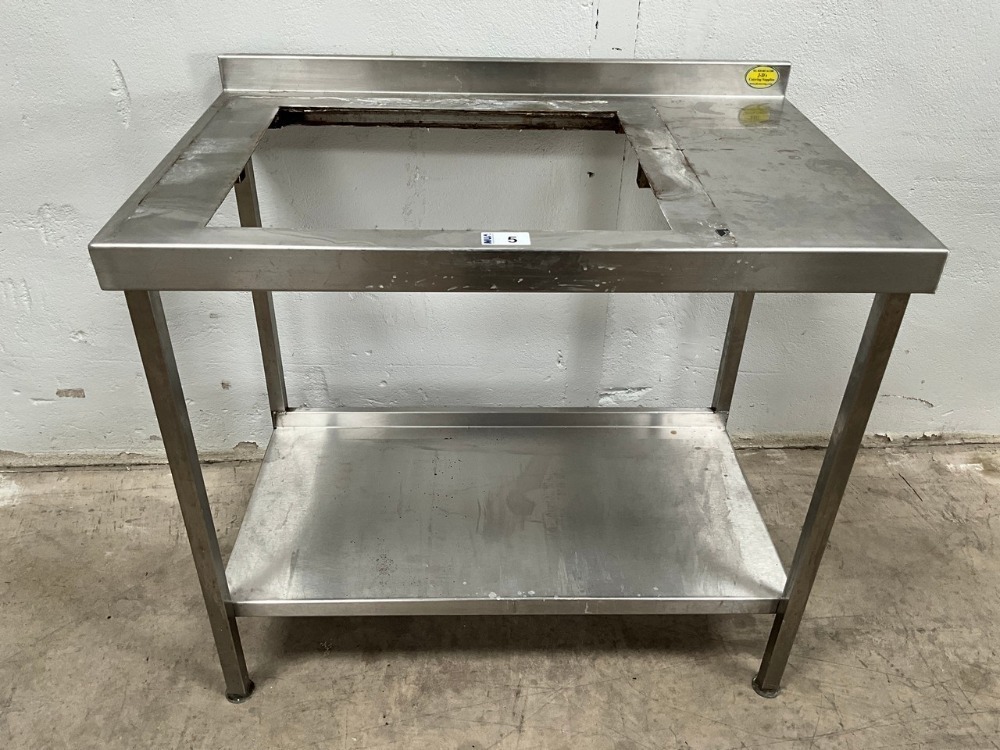 Lot 5APPROX. 1000mm STAINLESS STEEL PREP BENCH WITH SQUARE CUTOUT & UPSTAND