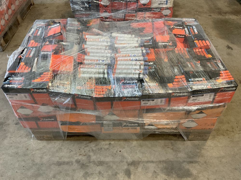 • PALLET TO INC. LARGE SELECTION OF ASSORTED UNUSED PASLODE NAILS & GAS
