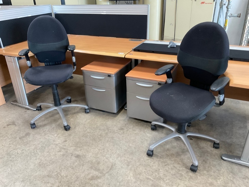Lot 42TWO PERSON BENCH DESK INC. 2No. DESKS, 2No. PEDESTALS & 2No. Operator Chairs