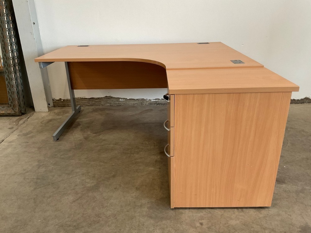 • 1600mm RIGHT HAND CORNER DESK & 3 DRAWER PEDESTAL - 2
