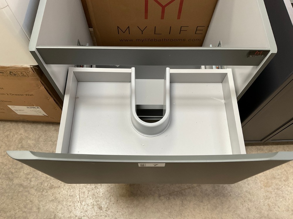 Lot 7MYLIFE SOFIA 600 TWO-DRAWER FLOOR-STANDING UNIT AND BASIN IN LEAD GREY