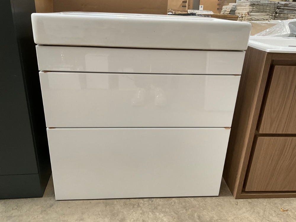 • APPROX. 600 TWO-DRAWER WALL-MOUNTED WHITE GLOSS VANITY UNIT AND BASIN - 3