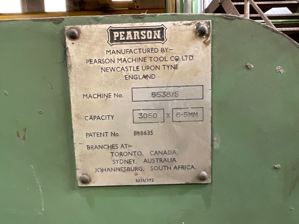 Lot 14PEARSON 3000mm x 6.5mm 3 PHASE GUILLOTINE